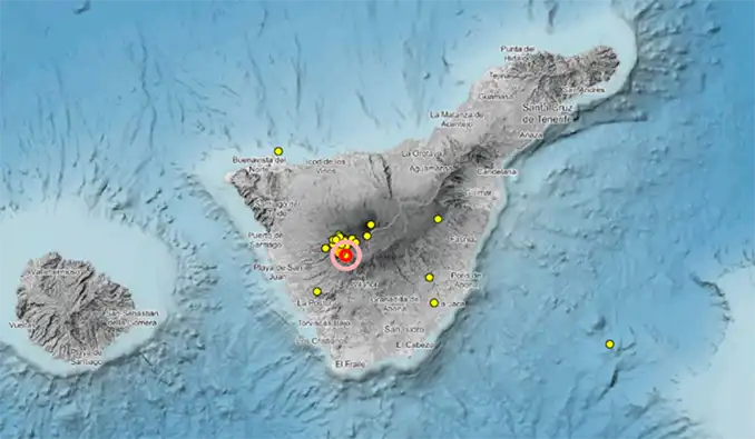 Национальный географический институт Испании (Instituto Geográfico Nacional — IGN) зафиксировал серию из примерно двадцати землетрясений с раннего утра понедельника в районе Pico Viejo, расположенного к западу от жерла Las Cañadas del Teide, на острове Тенерифе. Сейсмическая активность началась в 1:11 утра и продолжалась до раннего утра вторника, когда последнее землетрясение произошло в 5:51 утра.