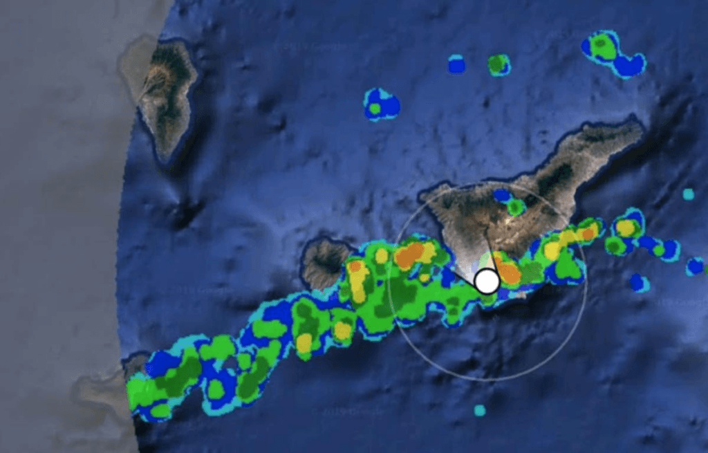 Сегодня, в понедельник, 16 сентября, с пяти часов утра юг Тенерифе был врасплох захвачен цепочкой гроз, связанных с DANA (ранее известной как «gotas frías»), пересекающей архипелаг с запада на восток и проявляющейся во множестве локальных штормов, богатых электрической активностью и осадками, идущими волнами. Эта линия связана с тем, что DANA взаимодействует с тропическим воздухом, приходящим на Канарские острова с юга, оставляя ощущение своеобразной ирреальности, которое охватило юг Тенерифе. Жители юга и туристы указывают на то, что в течение нескольких часов шёл довольно интенсивный дождь и за очень короткое время сверкало много молний. В настоящее время гроза с громами и молниями продолжается, интенсивность дождя меняется волнообразно. Природа юга радуется, чего греха таить.